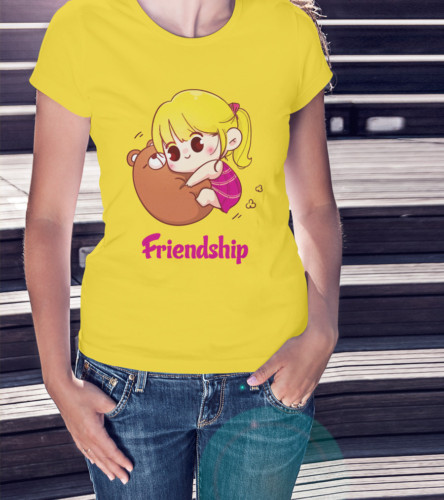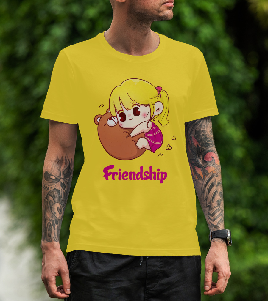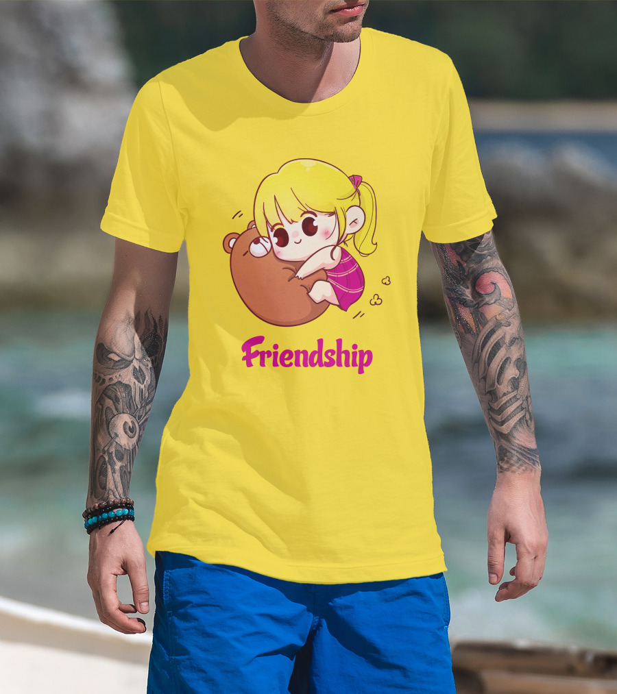 The Friendship Baby Comfortable Bear Hug Illustration for Brother T-shirt is designed for everyday wear and a consistent fit. Fabric is pre-shrunk ring-spun cotton with durable stitching. See the size chart below for exact measurements.