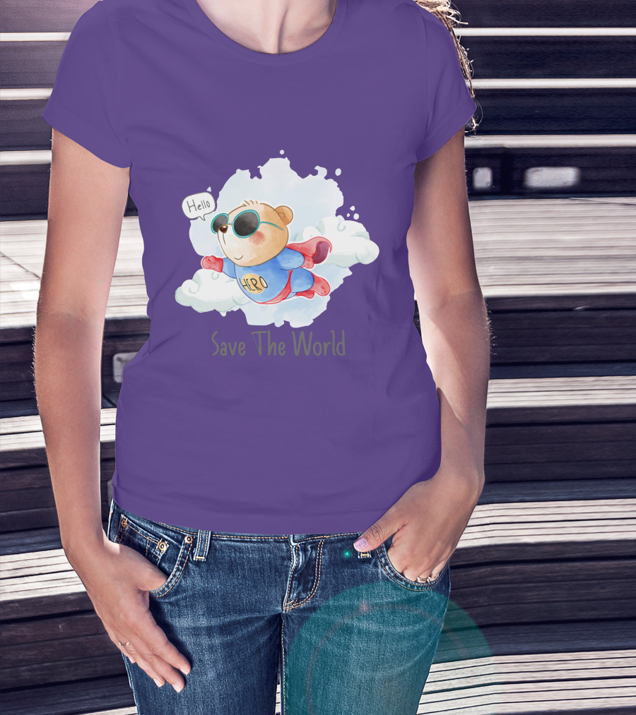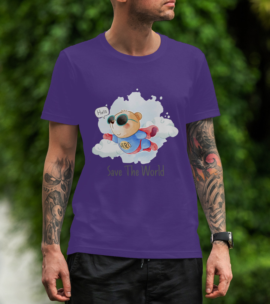 The Hello Hero Bear Save The World T-shirt is designed for everyday wear and a consistent fit. Fabric is pre-shrunk ring-spun cotton with durable stitching. See the size chart below for exact measurements.