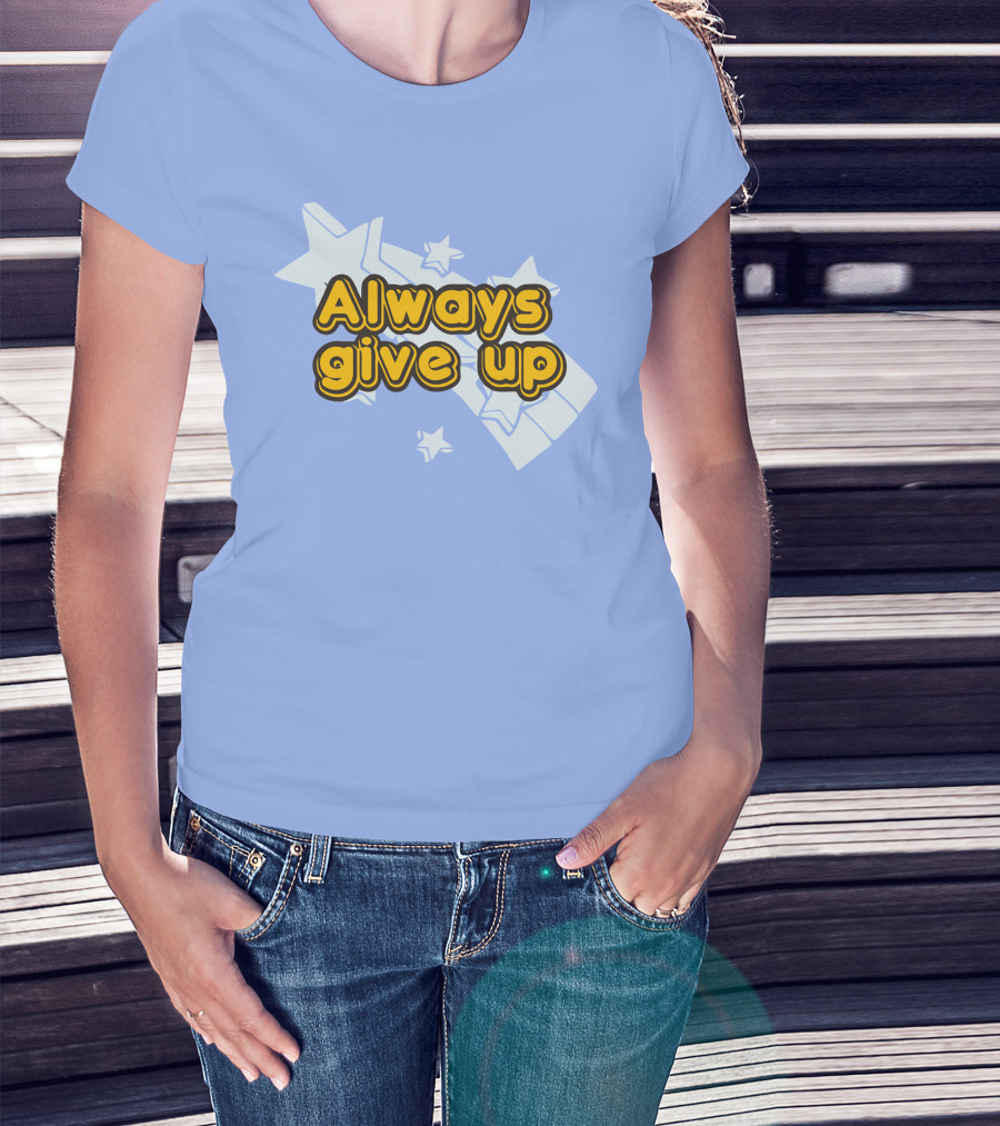 The Always Give Up Star T-shirt is designed for everyday wear and a consistent fit. Fabric is pre-shrunk ring-spun cotton with durable stitching. See the size chart below for exact measurements.