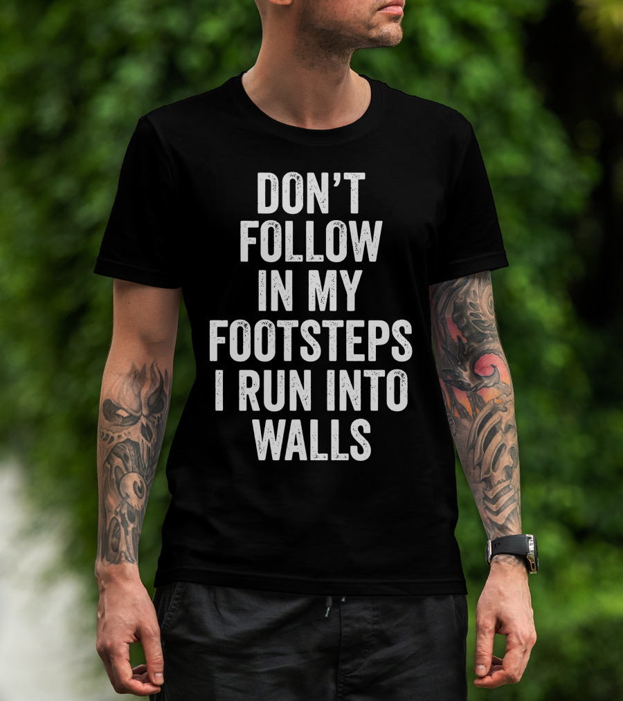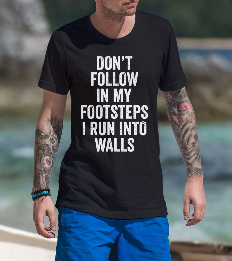 Don't Follow In My Footsteps I Run Into Walls Playful Cautionary T-Shirt