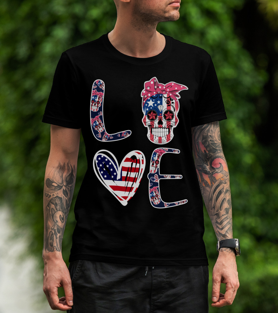 Skull Love American Flag Patriotic Bandana T-Shirt