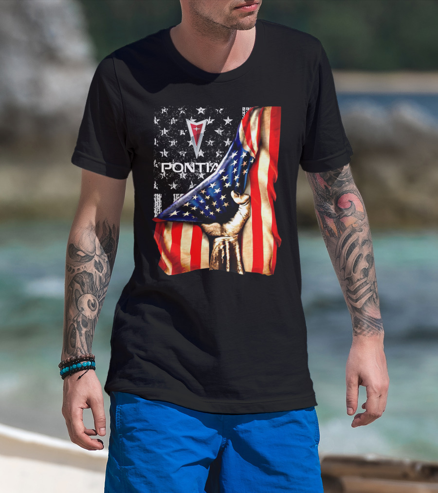 Pontiac Logo With American Flag Stars And Stripes Patriotic T-Shirt