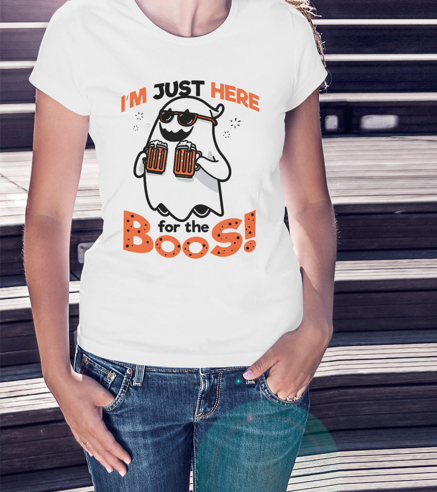 I'm Just Here For The Boos With Ghost Holding Beers T-Shirt