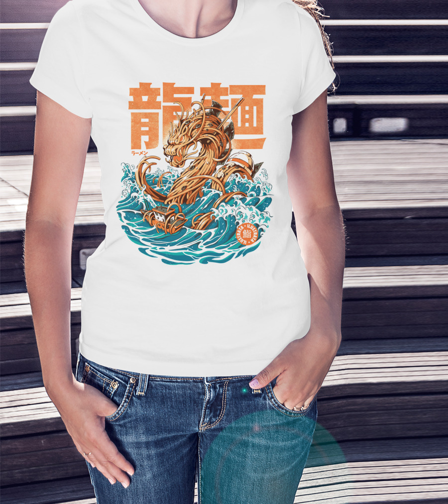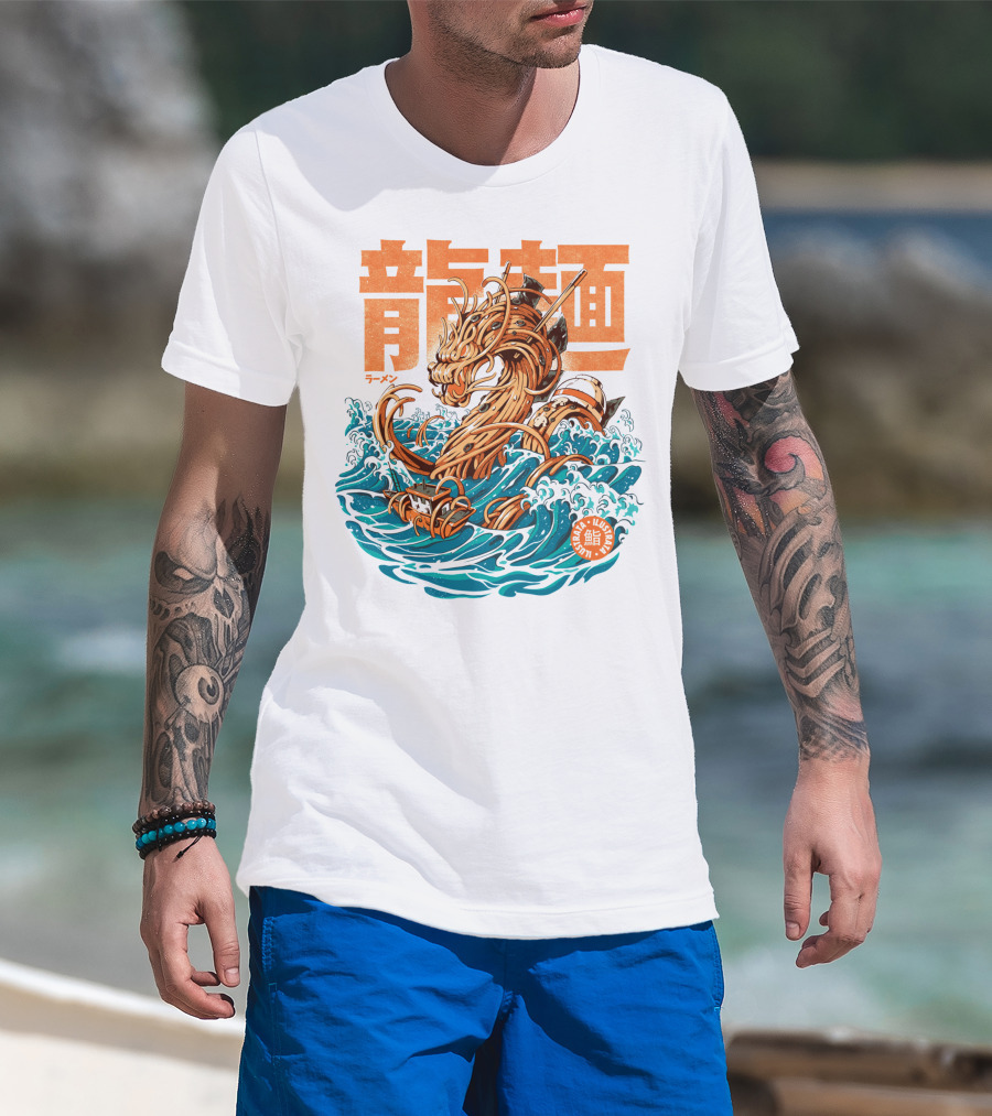 Great Ramen Dragon Kanagawa Woodblock Waves Japan T-Shirt