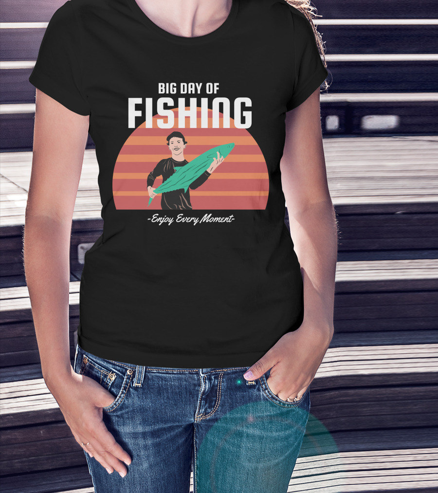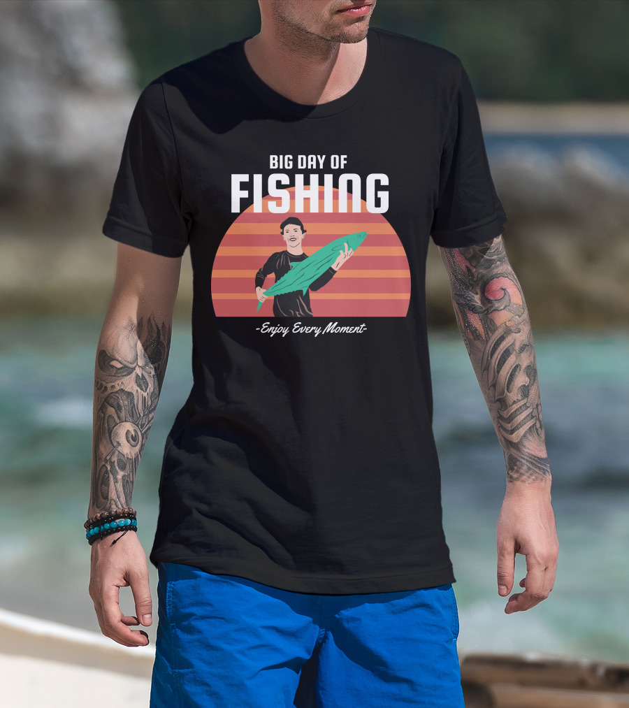 Big Day Of Fishing Enjoy Every Moment Retro Sunset Catch T-Shirt