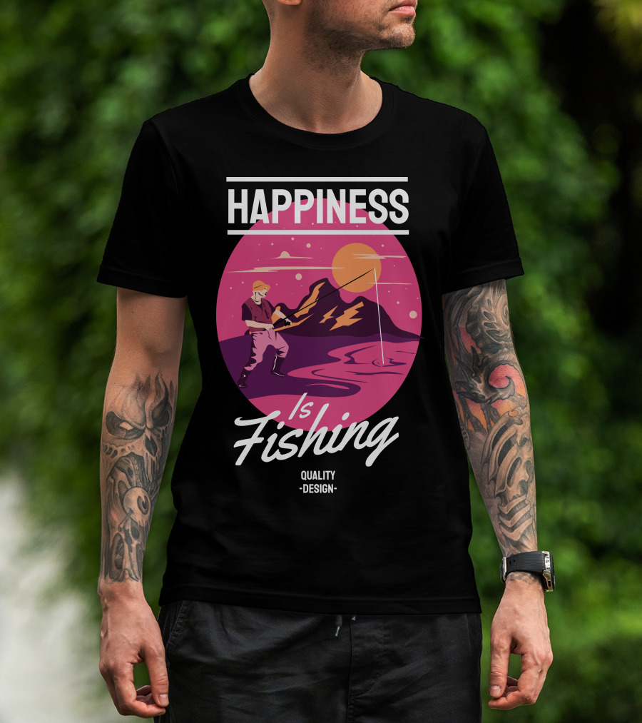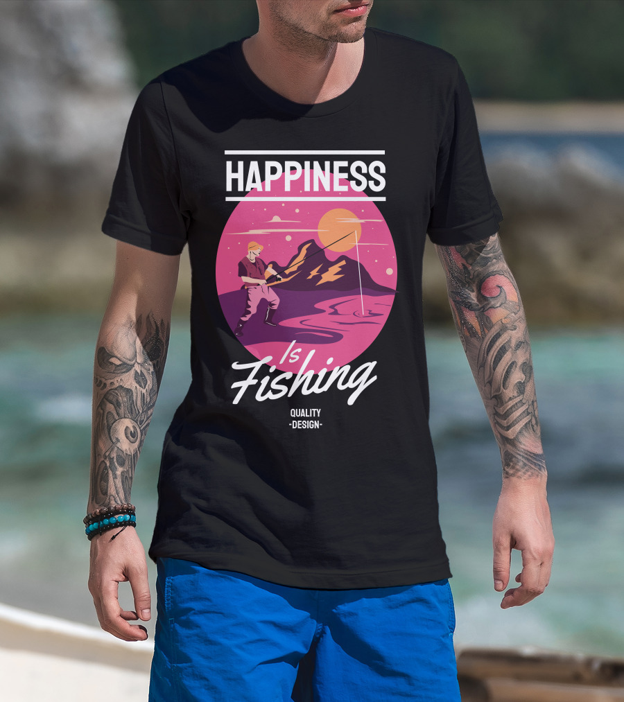 The Happiness is Fishing Quality T-shirt is designed for everyday wear and a consistent fit. Fabric is pre-shrunk ring-spun cotton with durable stitching. See the size chart below for exact measurements.