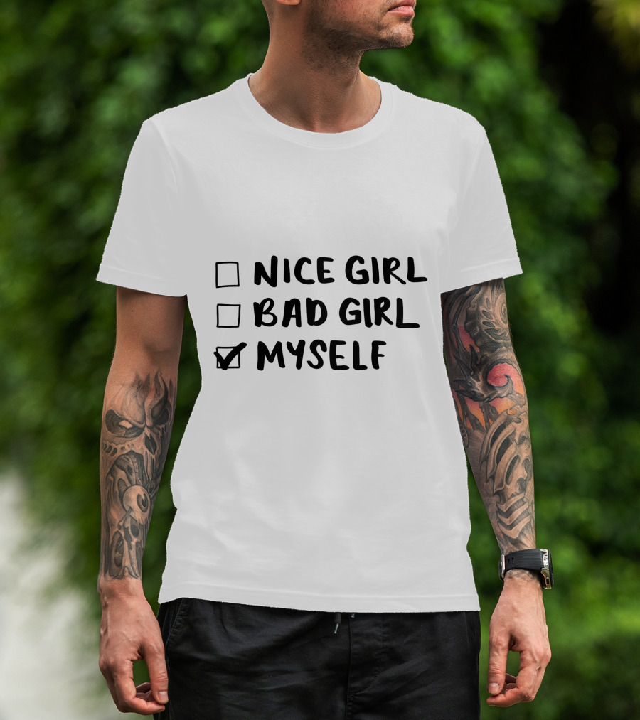 Nice Girl Bad Girl Myself Checkbox Hand Lettering Texts T-Shirt