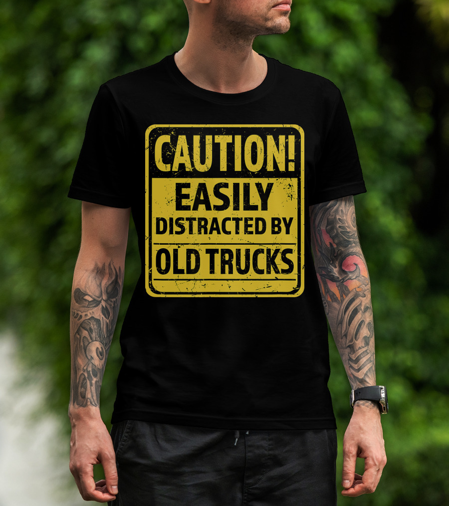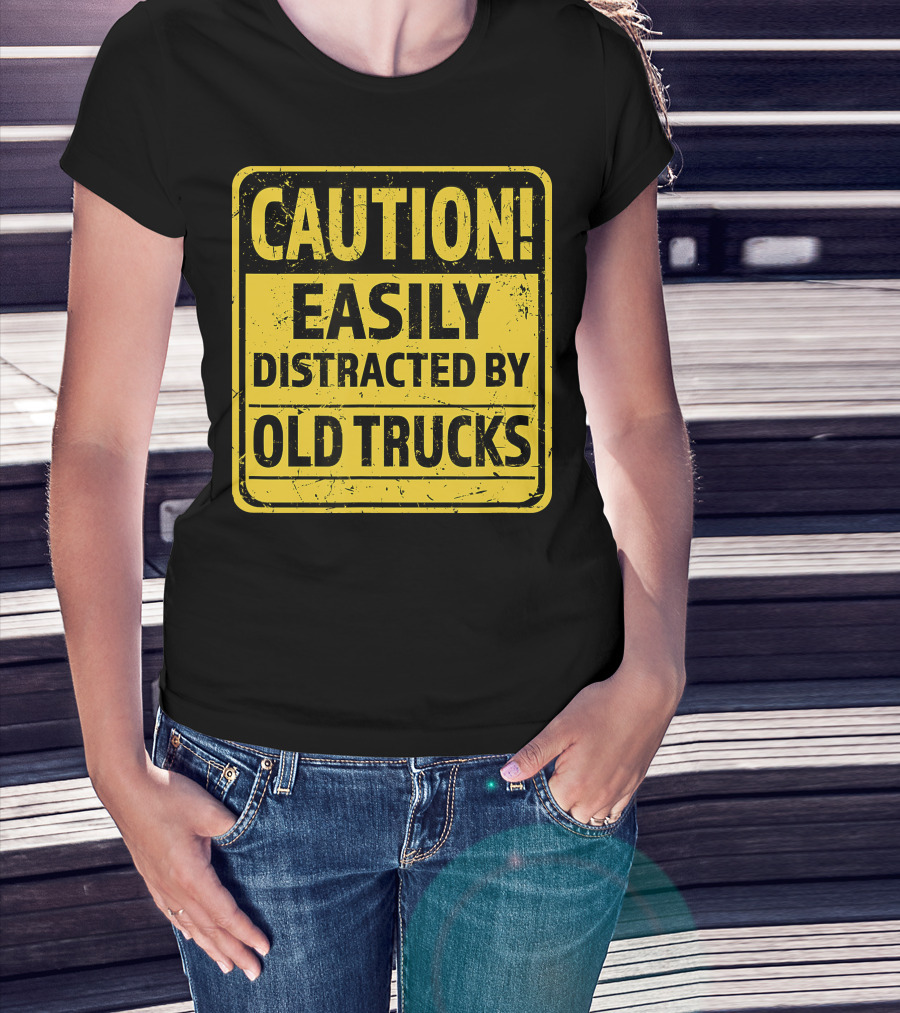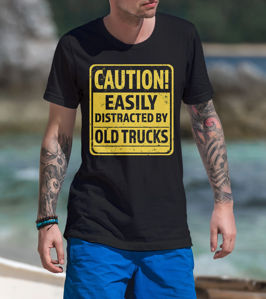 Caution Easily Distracted By Old Trucks Warning Sign T-Shirt