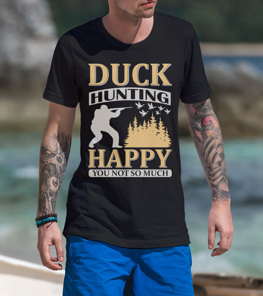 The Duck Hunting Happy You Not So Much T-shirt is designed for everyday wear and a consistent fit. Fabric is pre-shrunk ring-spun cotton with durable stitching. See the size chart below for exact measurements.
