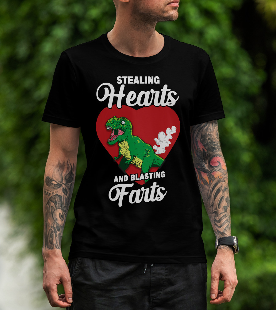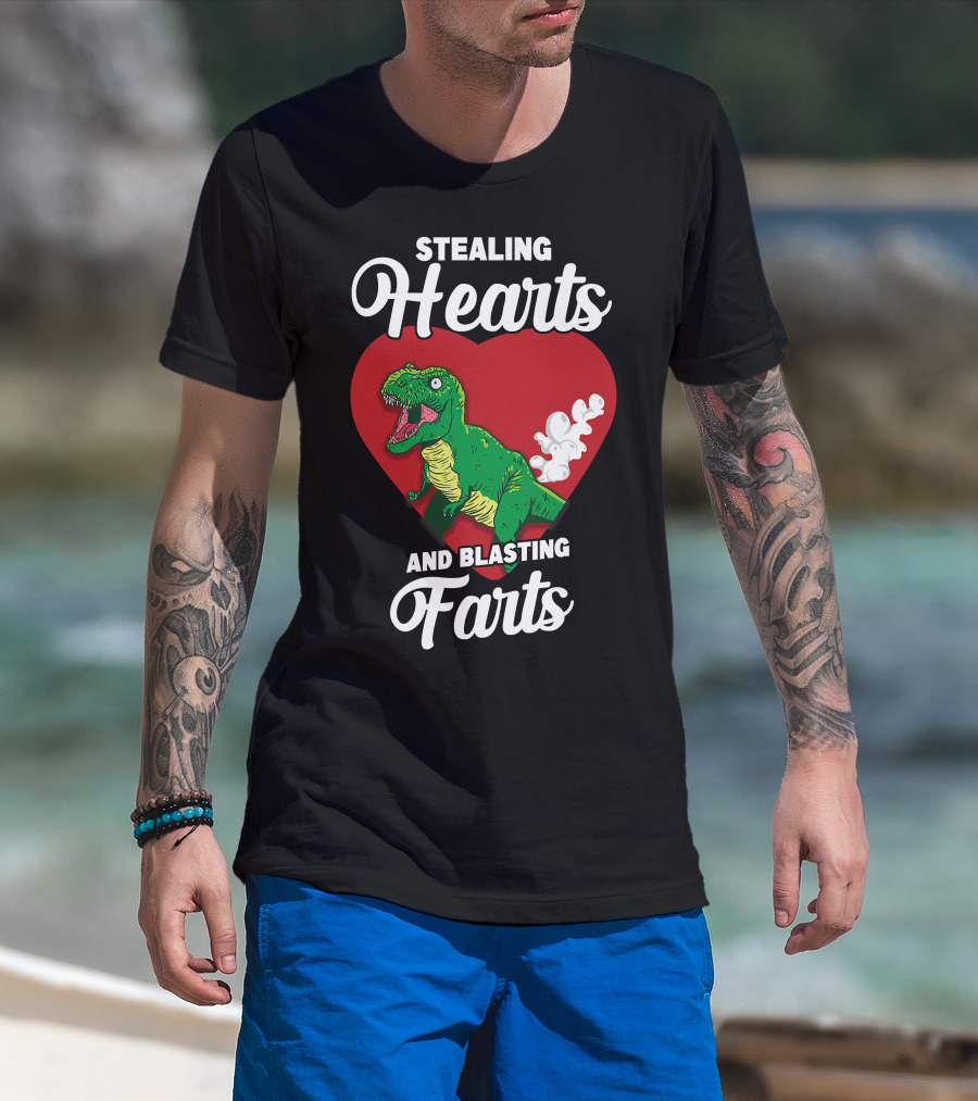 Stealing Hearts And Blasting Farts Dinosaur In Red Heart T-Shirt