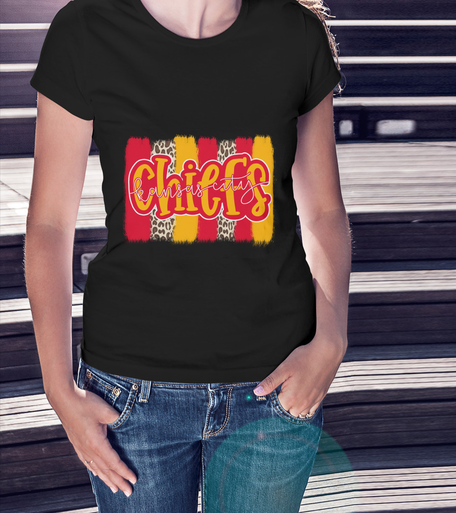 Kansas City Chiefs Handlettered Red Gold Leopard Stripes T-Shirt