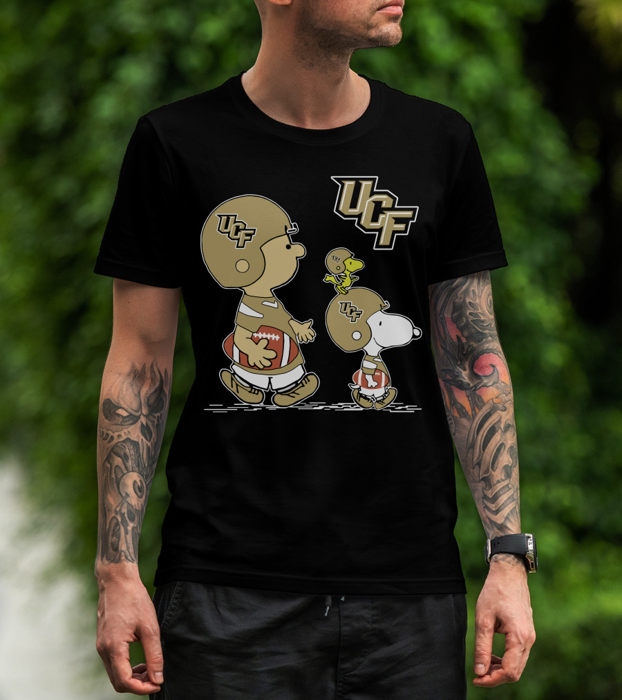 UCF Knights Peanuts Characters In Football Helmets With Woodstock T-Shirt