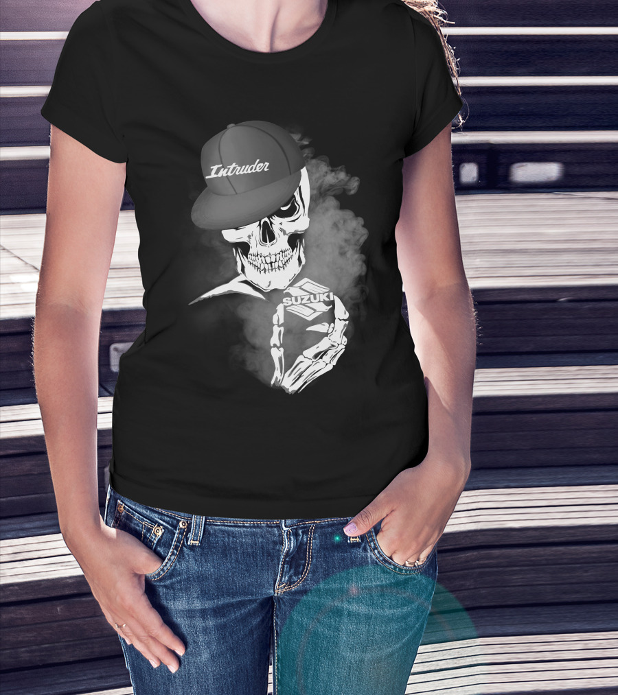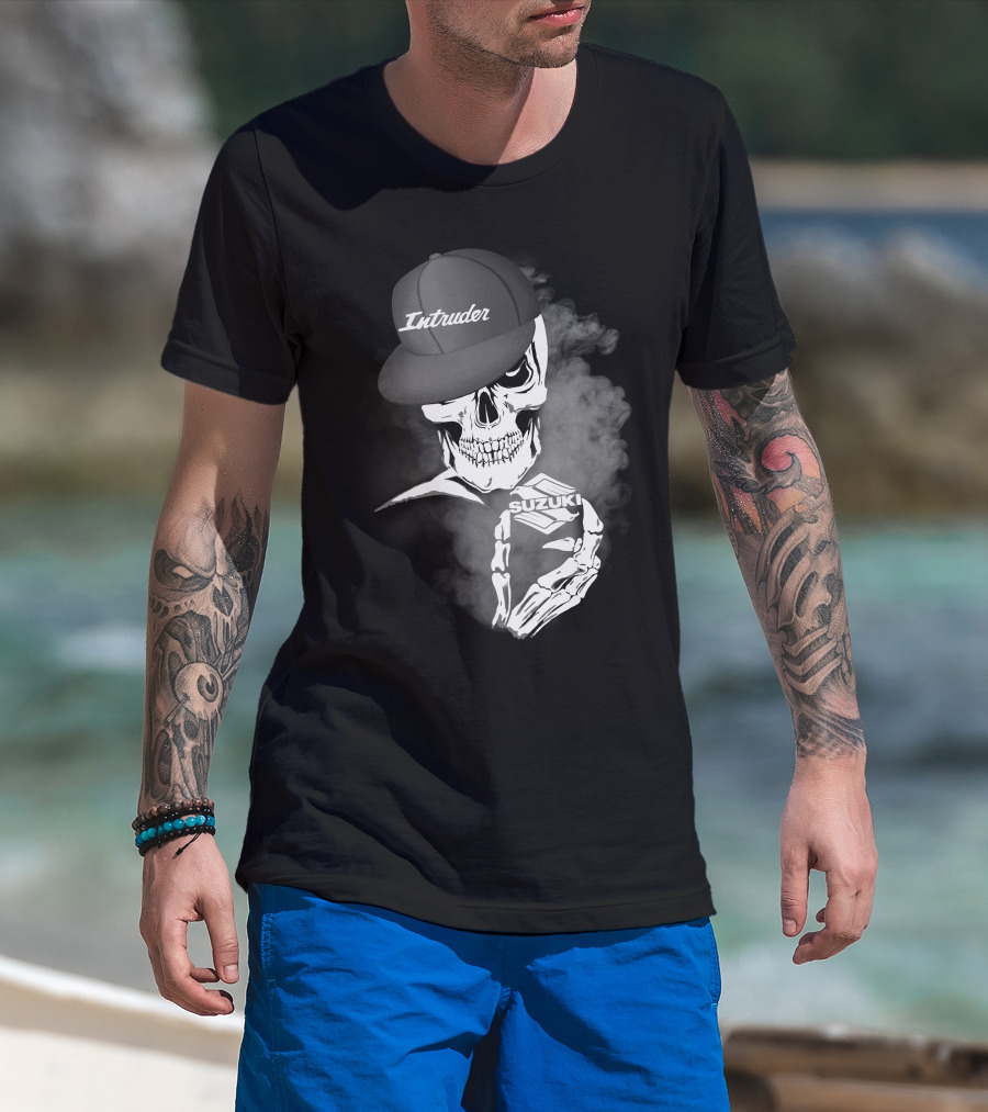 Suzuki Intruder Skull With Hat And Smoke Motif T-Shirt