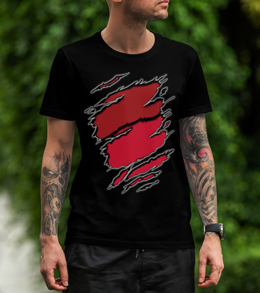 The Chief Cardi Red Claw Marks T-shirt is designed for everyday wear and a consistent fit. Fabric is pre-shrunk ring-spun cotton with durable stitching. See the size chart below for exact measurements.