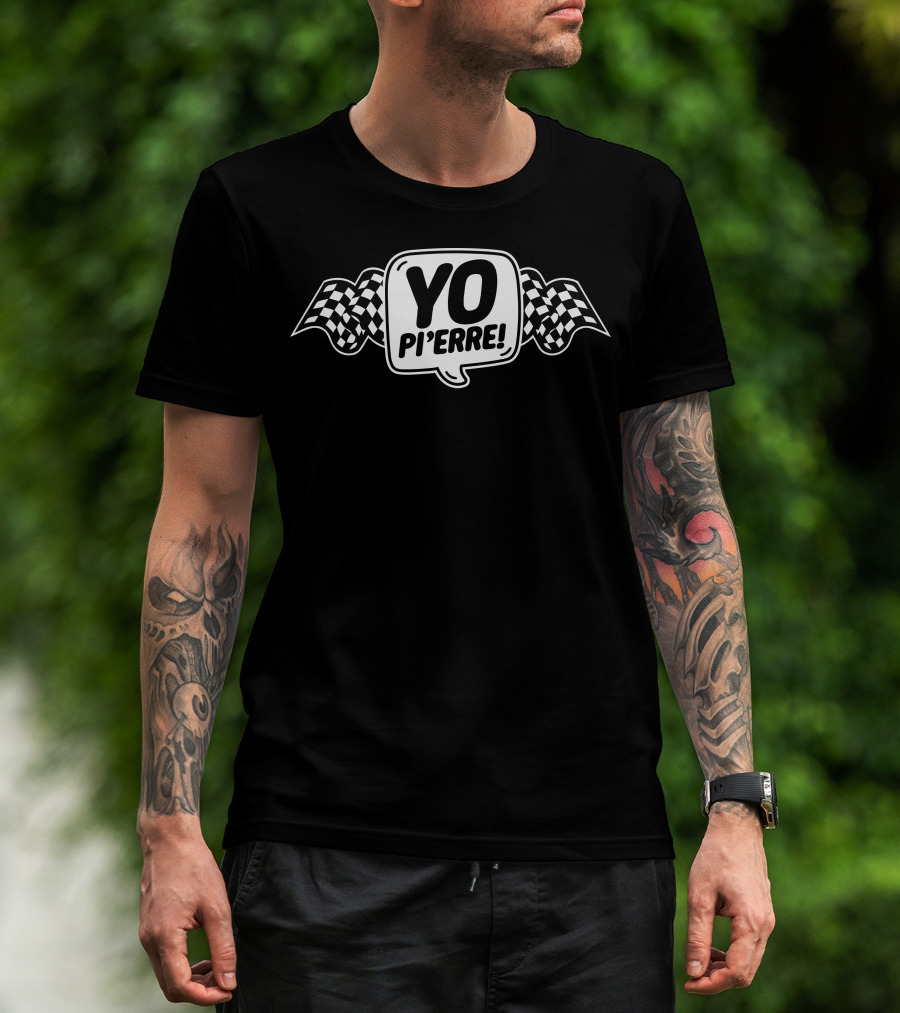 The YO Pi'ERRE Checkered Flags T-shirt is designed for everyday wear and a consistent fit. Fabric is pre-shrunk ring-spun cotton with durable stitching. See the size chart below for exact measurements.