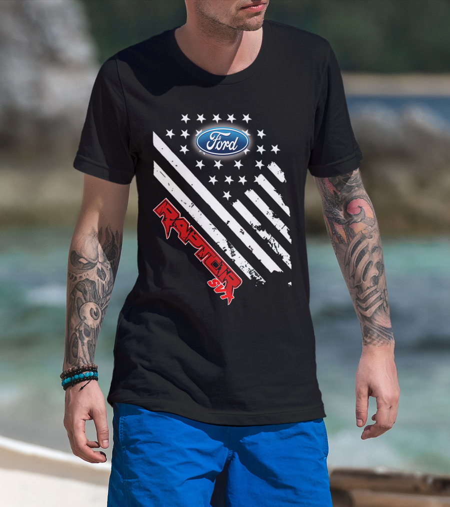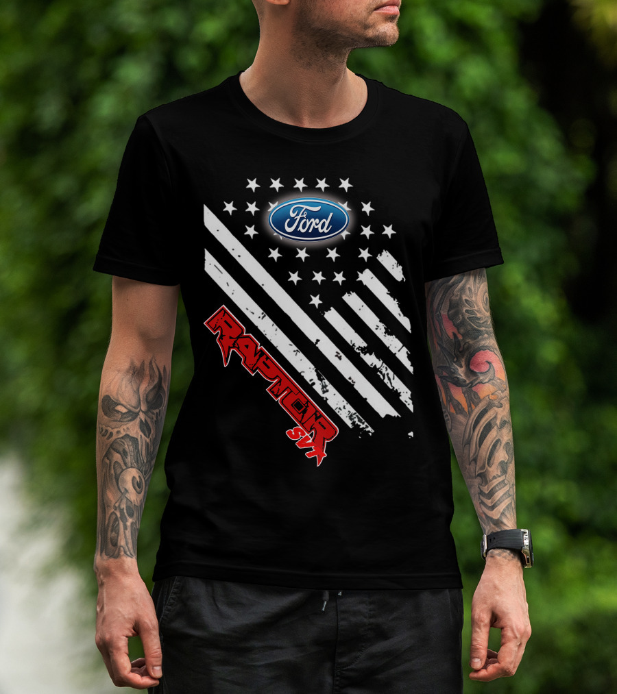 The Ford Raptor SVT American Flag T-shirt is designed for everyday wear and a consistent fit. Fabric is pre-shrunk ring-spun cotton with durable stitching. See the size chart below for exact measurements.
