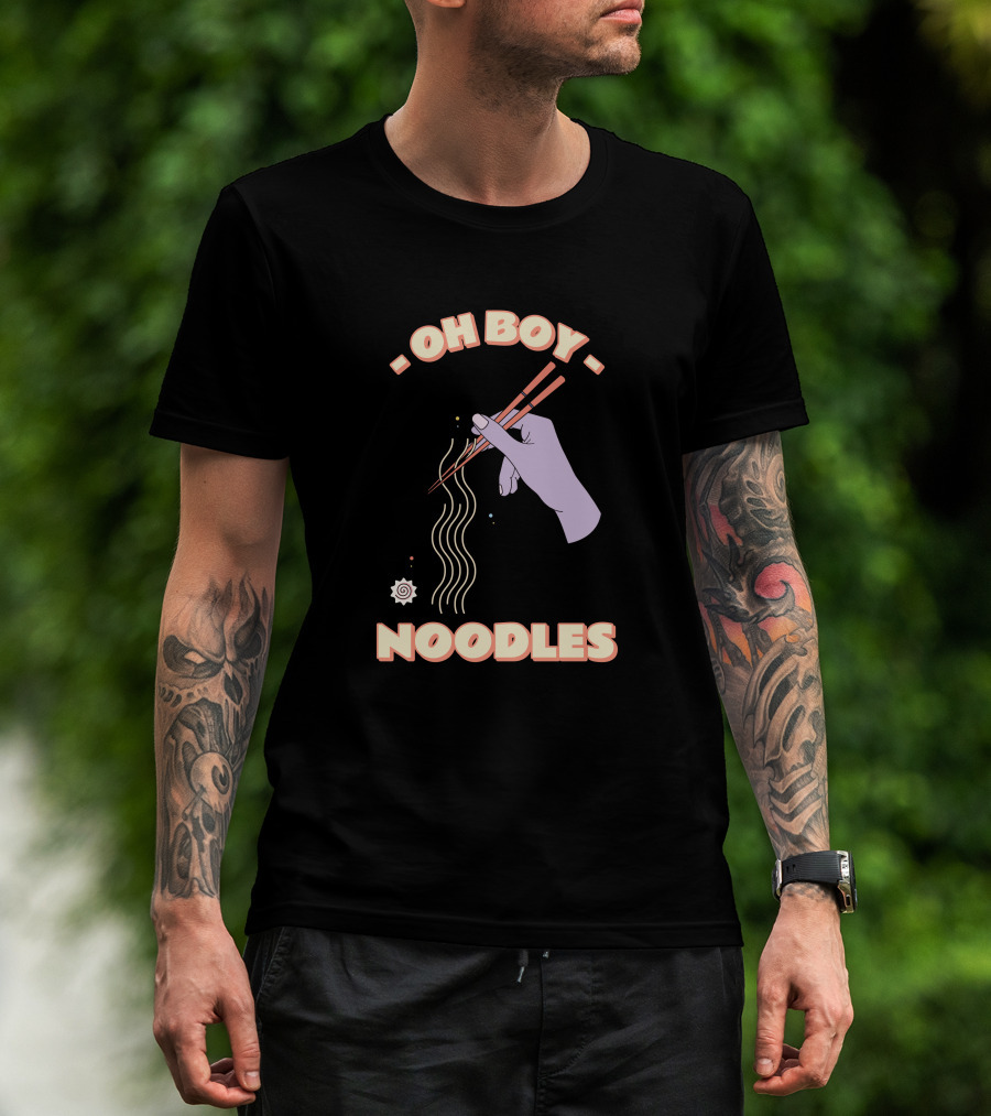 Oh Boy Noodles Hand Holding Chopsticks With Floating Ramen T-Shirt