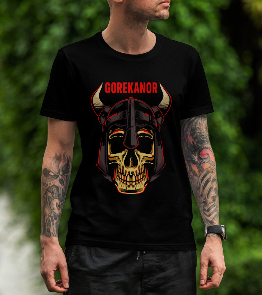 The Gorekanor Skull Viking T-shirt is designed for everyday wear and a consistent fit. Fabric is pre-shrunk ring-spun cotton with durable stitching. See the size chart below for exact measurements.