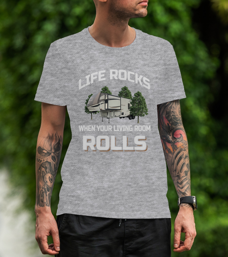 LIFE ROCKS WHEN YOUR LIVING ROOM ROLLS Forest River Wildcat 32WB T-Shirt