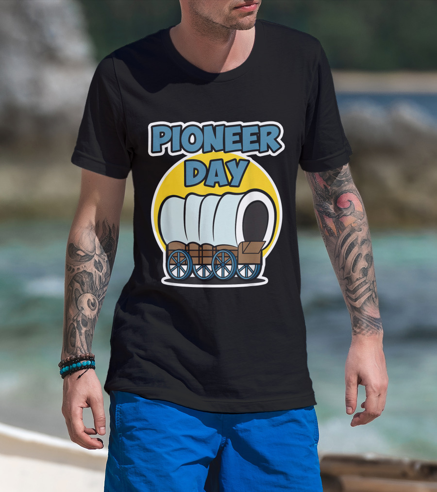 Pioneer Day Covered Wagon Illustration With Bold Lettering T-Shirt
