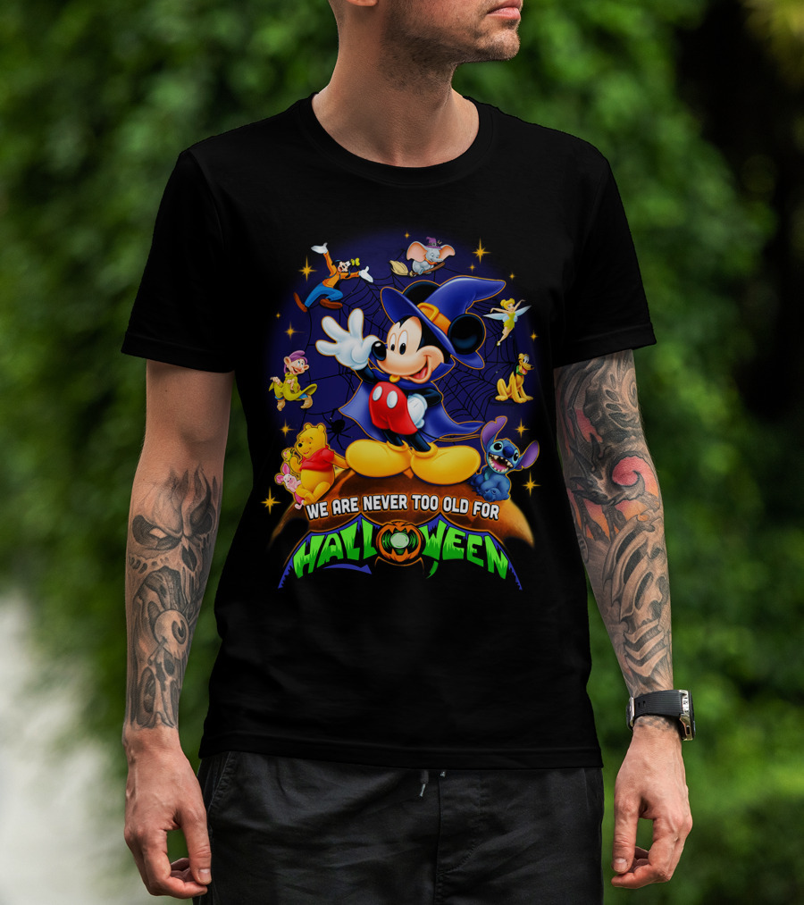 We Are Never Too Old For Halloween Mickey Mouse And Friends T-Shirt