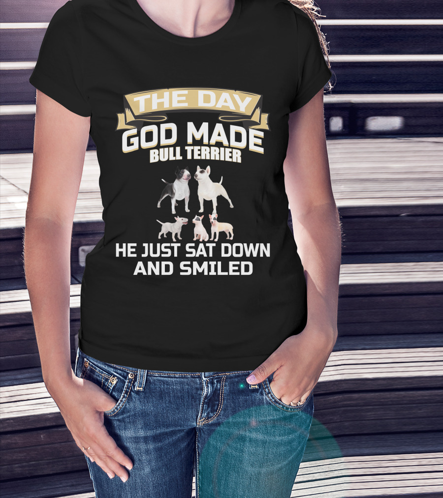 THE DAY GOD MADE BULL TERRIER HE JUST SAT DOWN AND SMILED T-Shirt