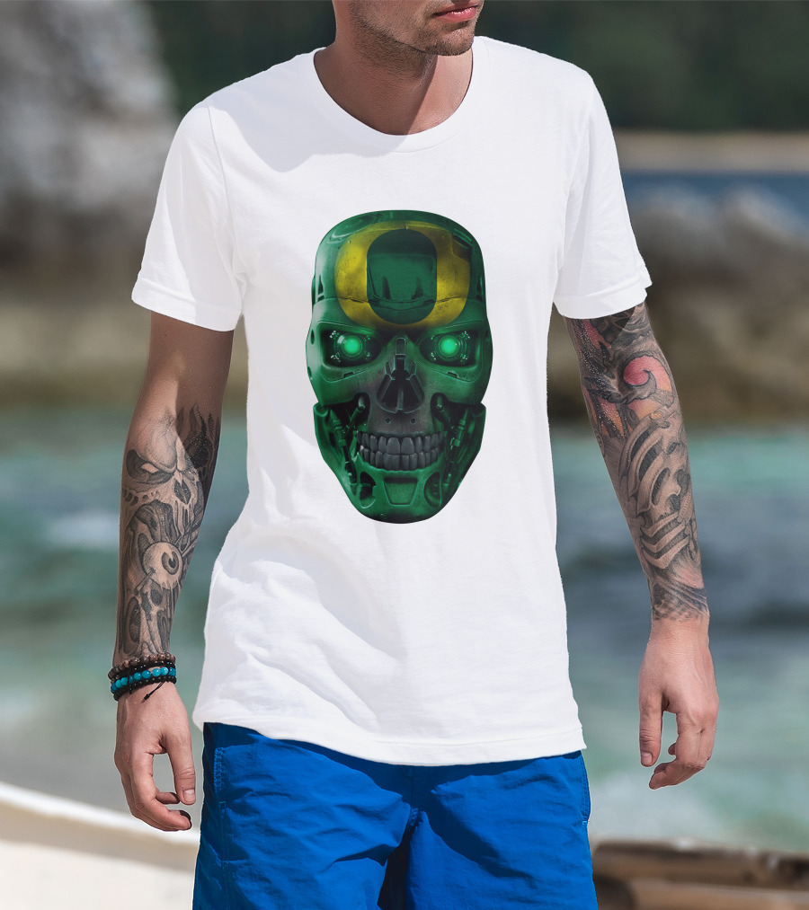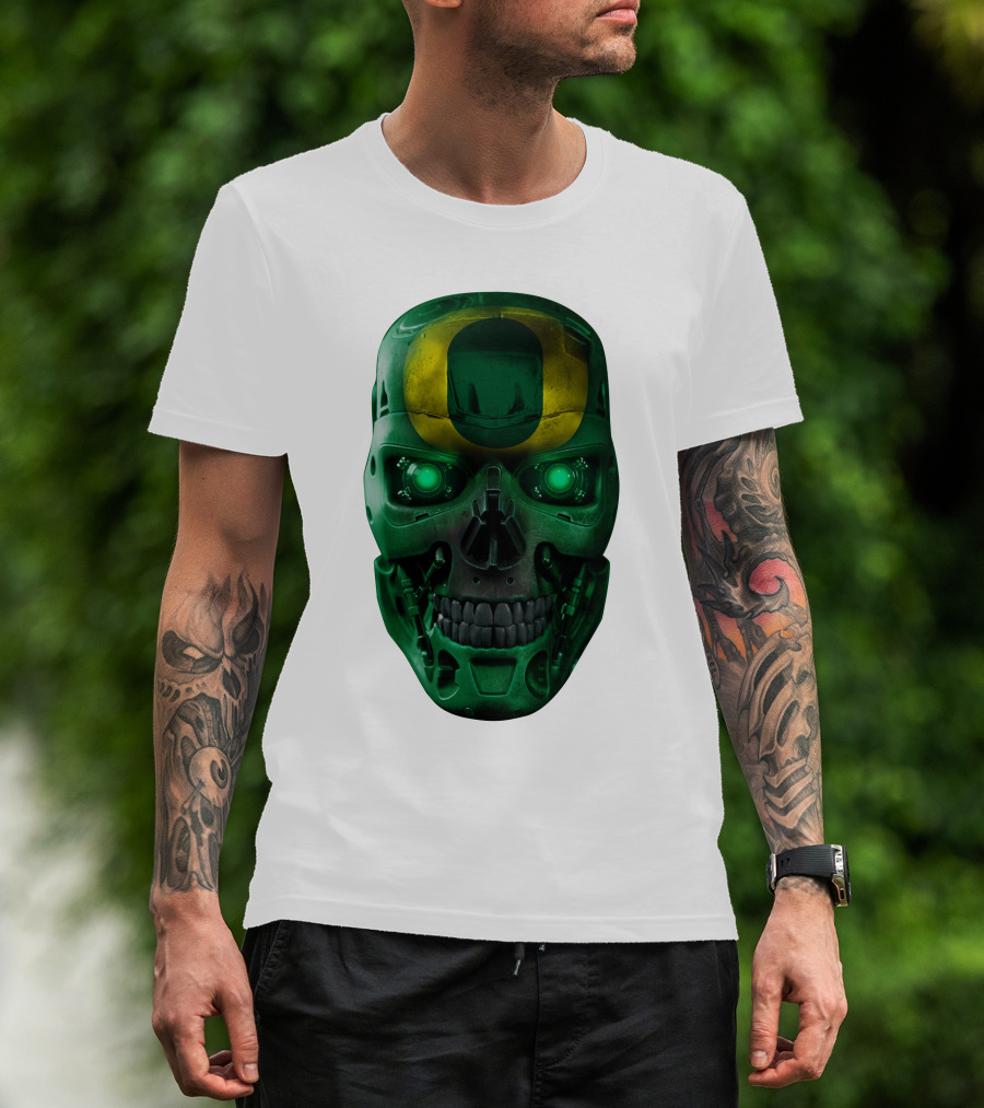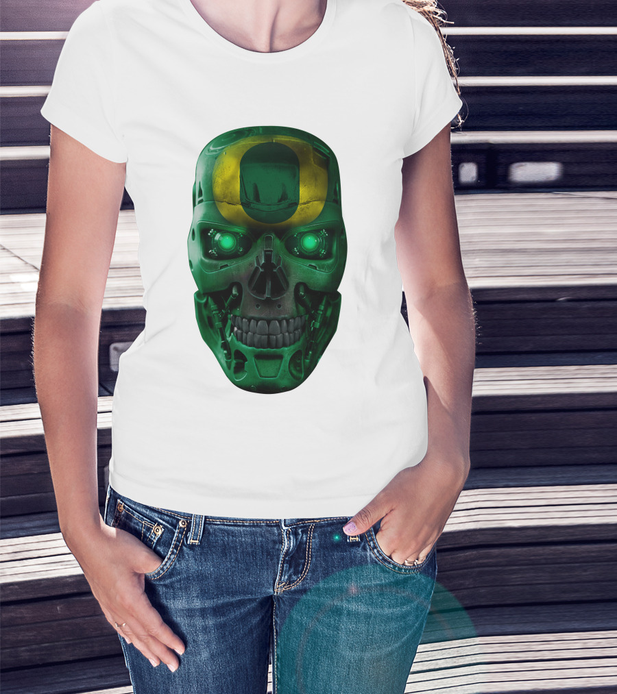 Oregon Ducks Skull Robot Green Neon Eyes T-Shirt