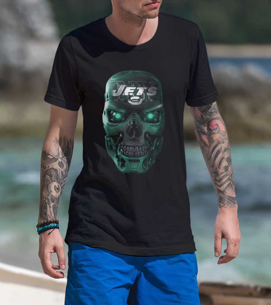 The Green Robotic Skull Jets Football T-shirt is designed for everyday wear and a consistent fit. Fabric is pre-shrunk ring-spun cotton with durable stitching. See the size chart below for exact measurements.