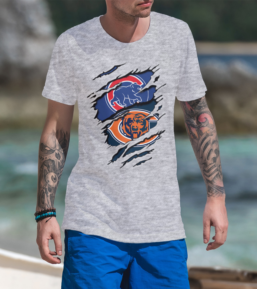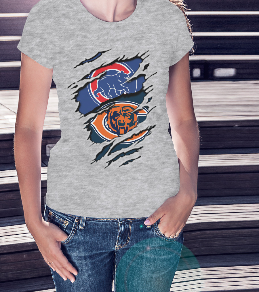 Chicago Cubs And Chicago Bears Logos Collision T-Shirt