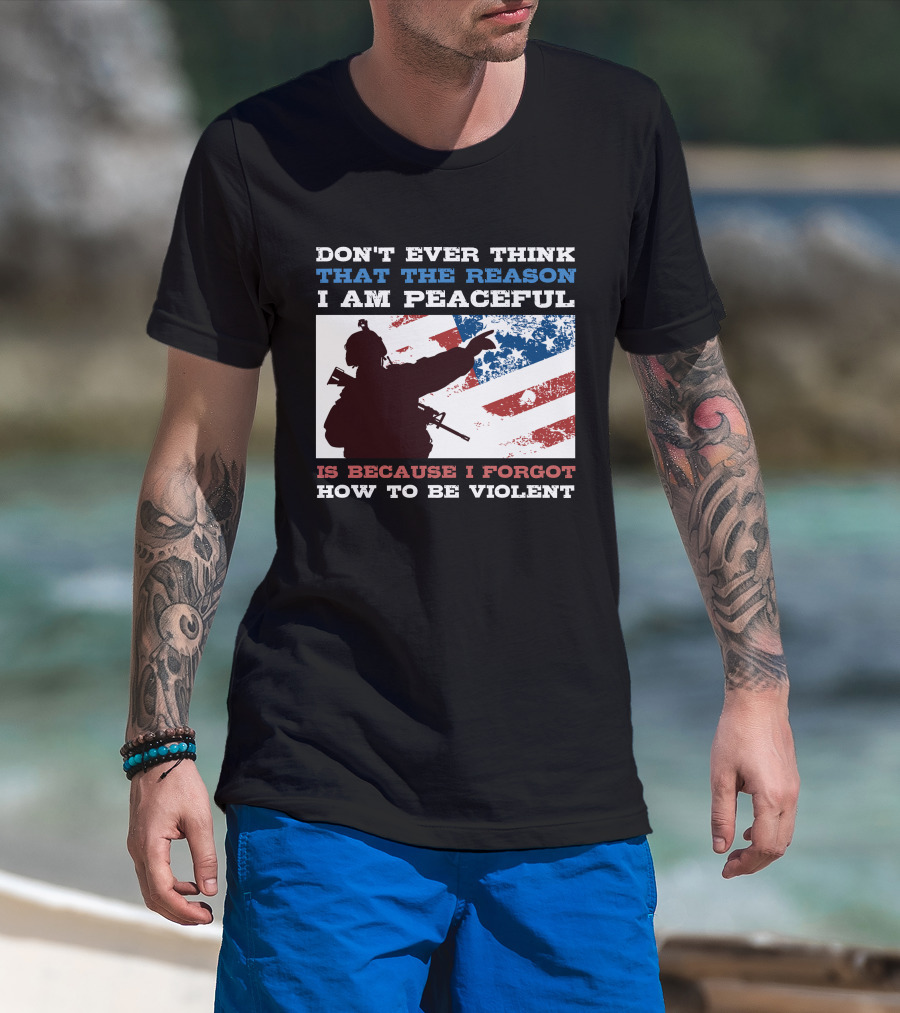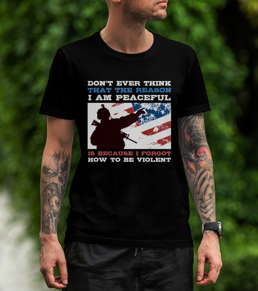 DON'T EVER THINK THAT THE REASON I AM PEACEFUL IS BECAUSE I FORGOT HOW TO BE VIOLENT T-Shirt