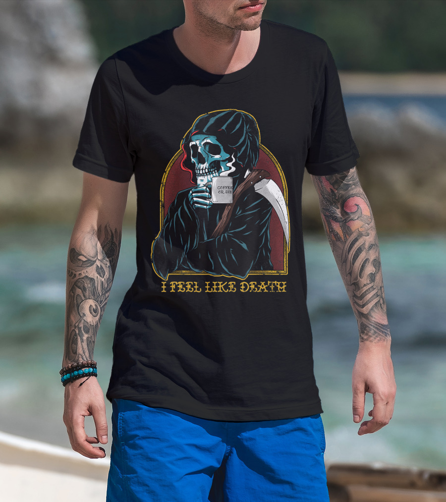 I Feel Like Death Grim Reaper Skeleton Skull Coffee Or Die Java T-Shirt