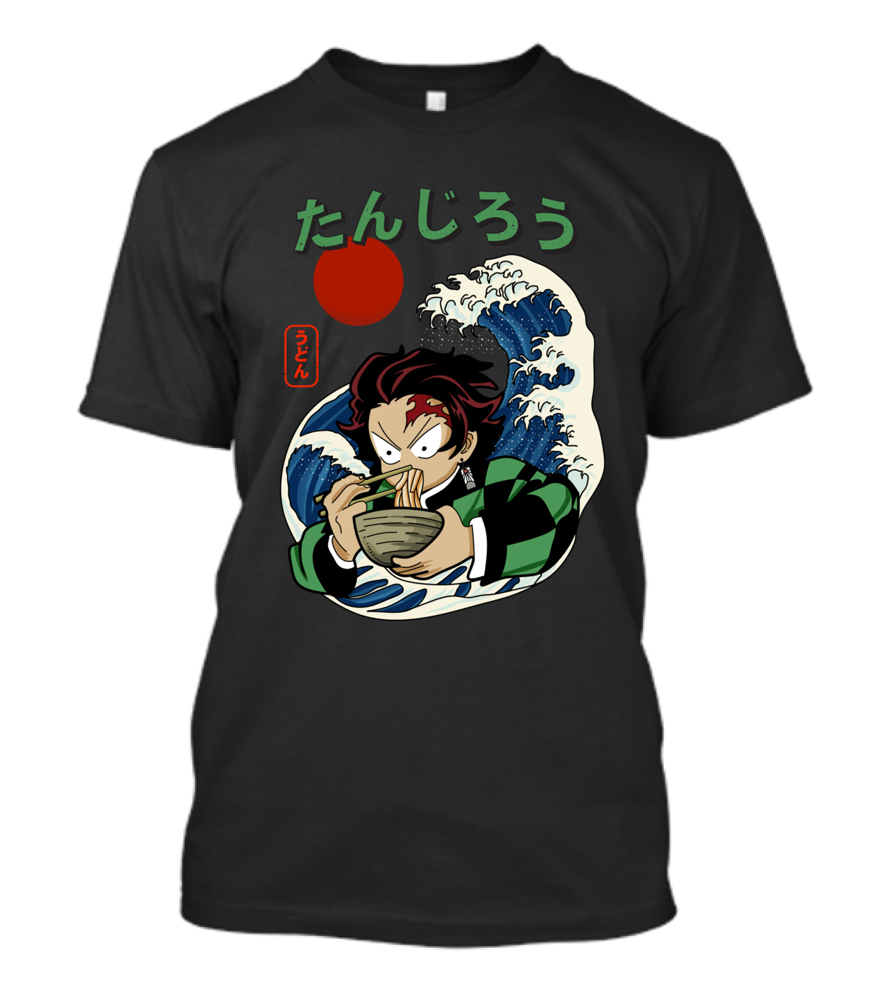 The Tanjiro Ramen Wave Kanagawa うどん Kimetsu No Yaiba Demon Slayer T-shirt is designed for everyday wear and a consistent fit. Fabric is pre-shrunk ring-spun cotton with durable stitching. See the size chart below for exact measurements.