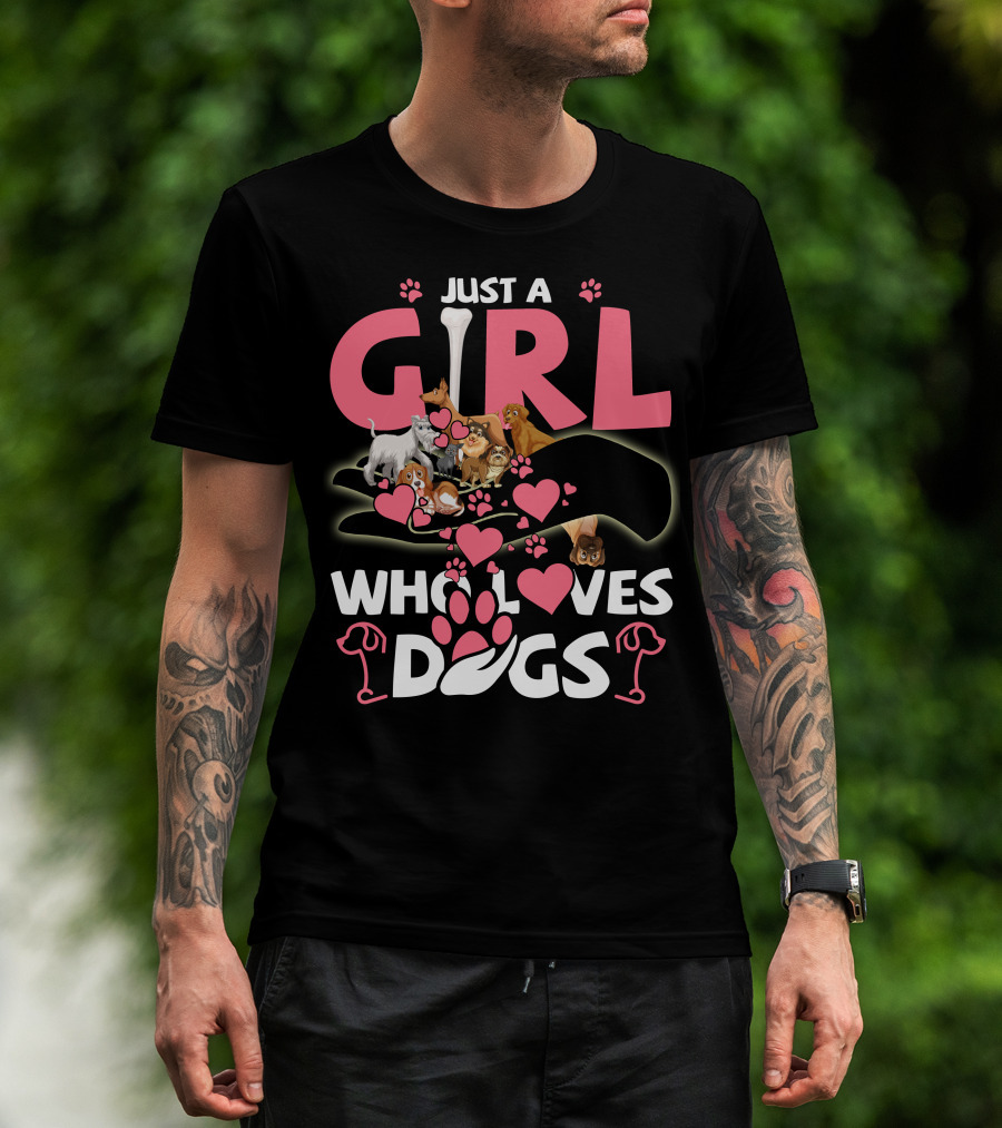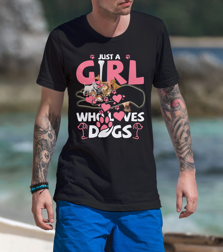 Just A Girl Who Loves Dogs With Cute Puppies And Hearts T-Shirt