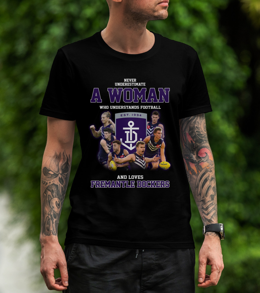 How much will this Never Underestimate a Woman Who Understands Football and Loves Fremantle Dockers shirt shrink?