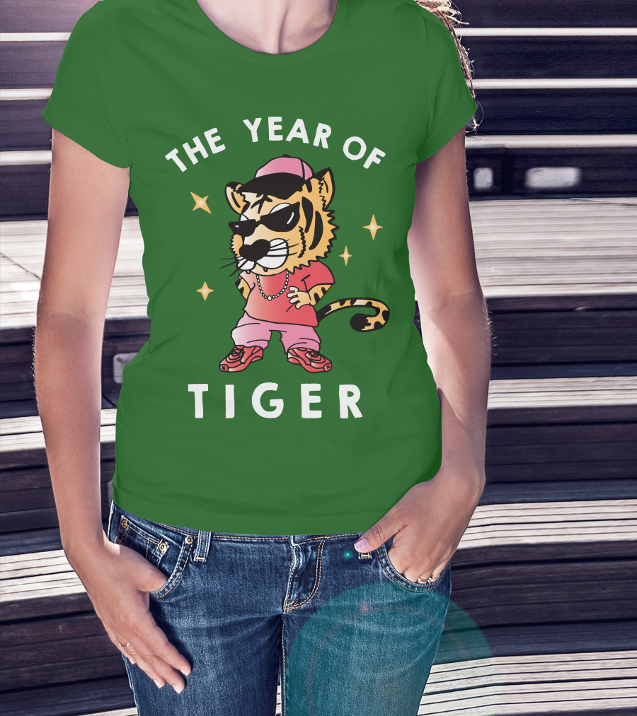 The THE YEAR OF TIGER Hip Hop Style Cartoon Tiger Wearing Sunglasses and Chain T-shirt is designed for everyday wear and a consistent fit. Fabric is pre-shrunk ring-spun cotton with durable stitching. See the size chart below for exact measurements.