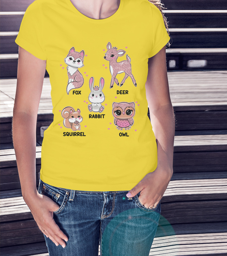Fox Deer Rabbit Squirrel Owl Cute Animals T-Shirt