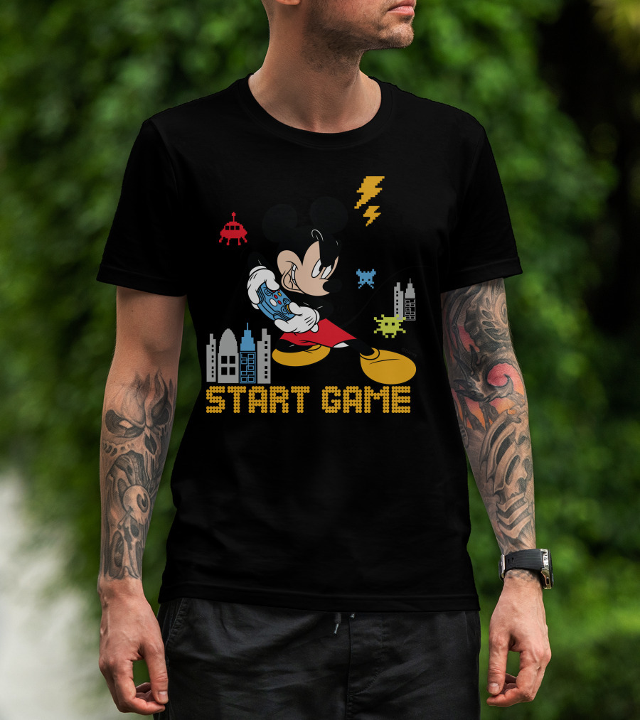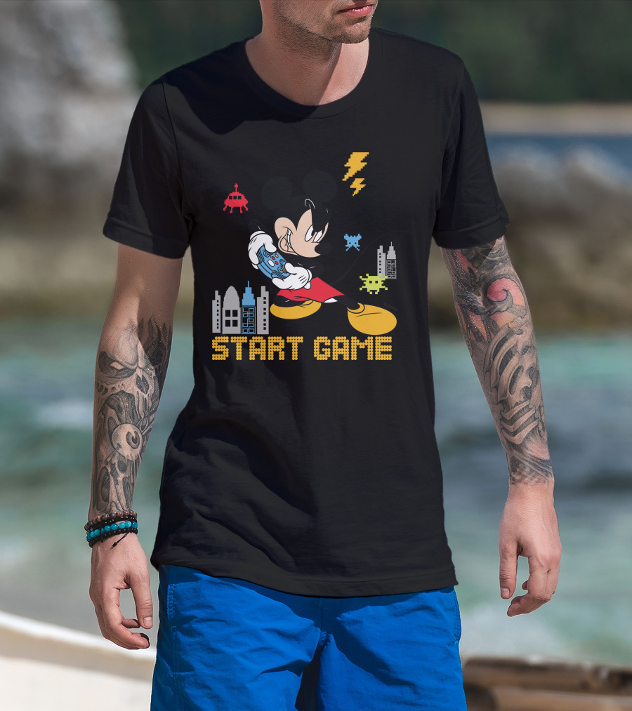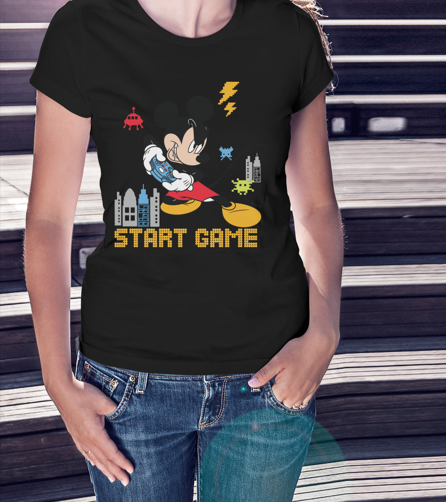 Mickey Holding Controller Retro Gaming City Start Game T-Shirt