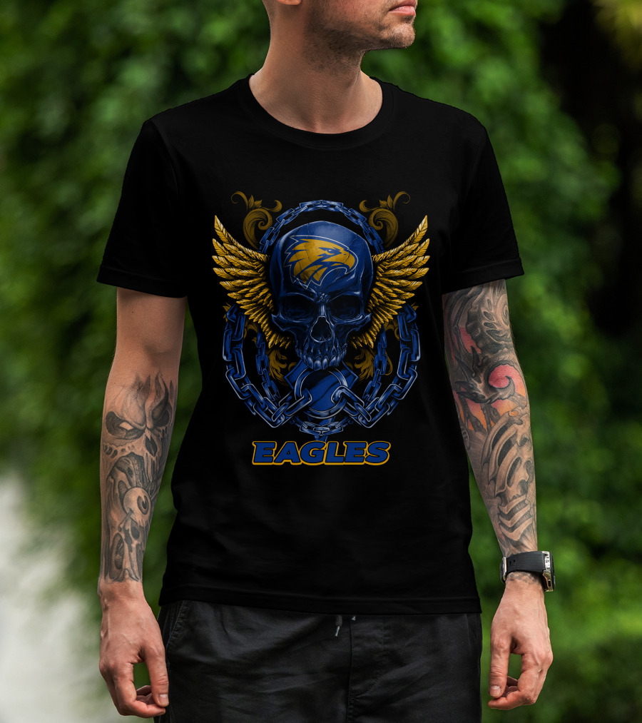 West Coast Eagles Skull With Chains And Wings T-Shirt