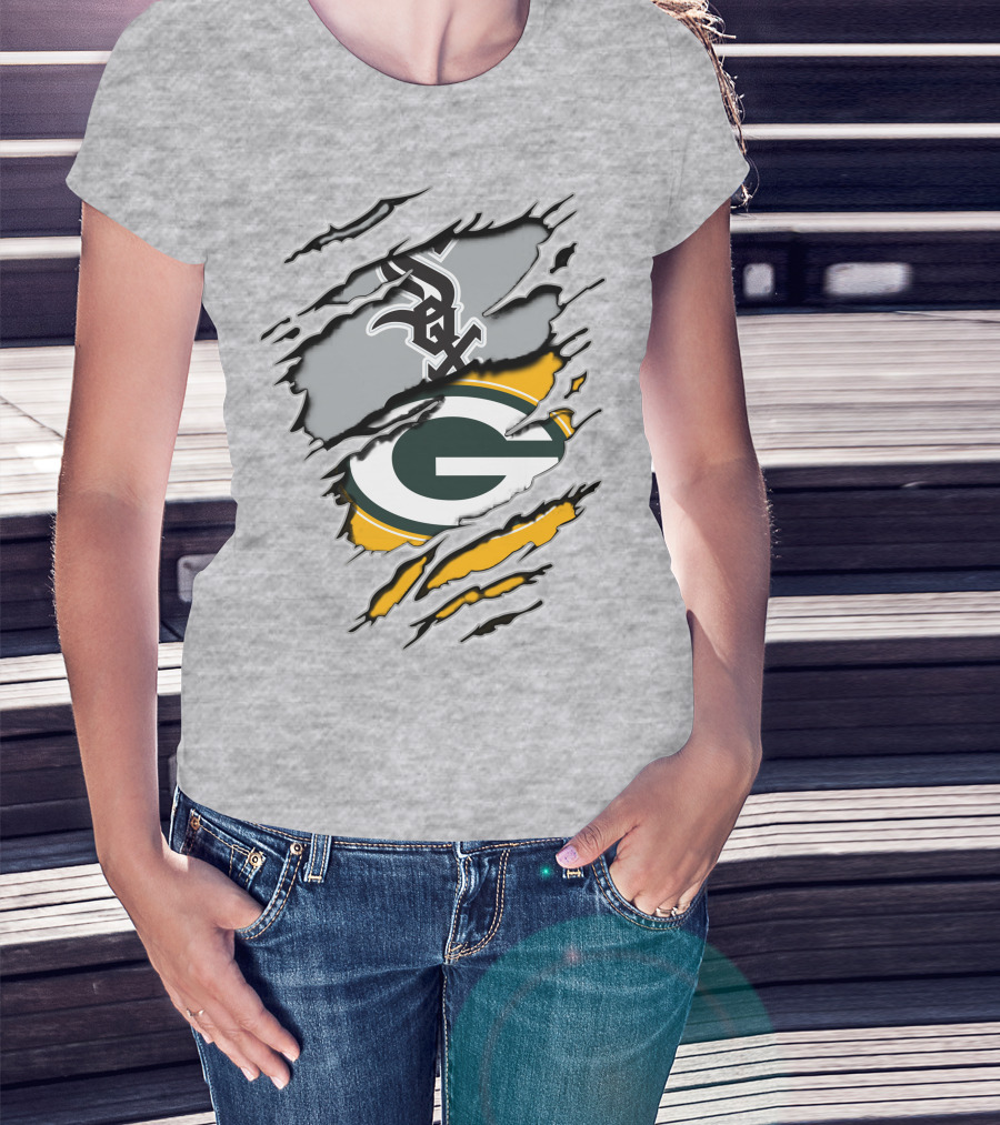 Packers White Sox Black And Green Rip Claw Marks T-Shirt