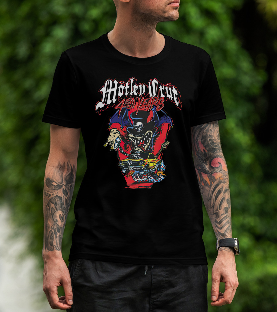 Mötley Crüe 40 Years Skeleton Guitar Flying Car T-Shirt