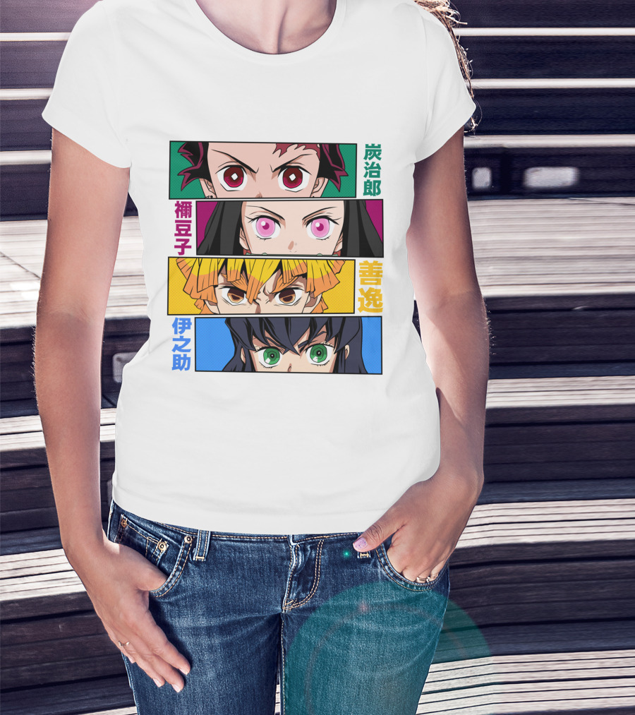 Demon Slayer Kimetsu No Yaiba Tanjiro Nezuko Zenitsu Inosuke Character Faces T-Shirt