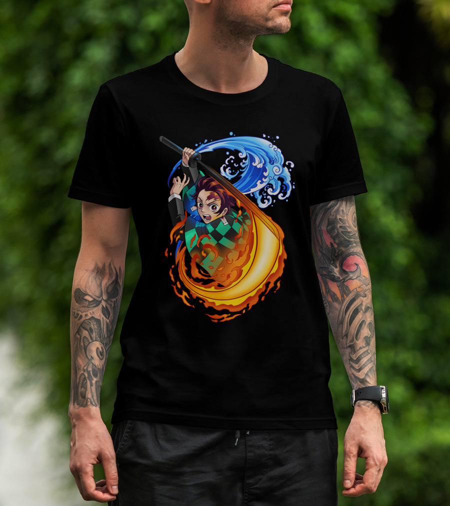 Demon Slayer Kimetsu No Yaiba Tanjiro Kamado Water And Fire Attack T-Shirt