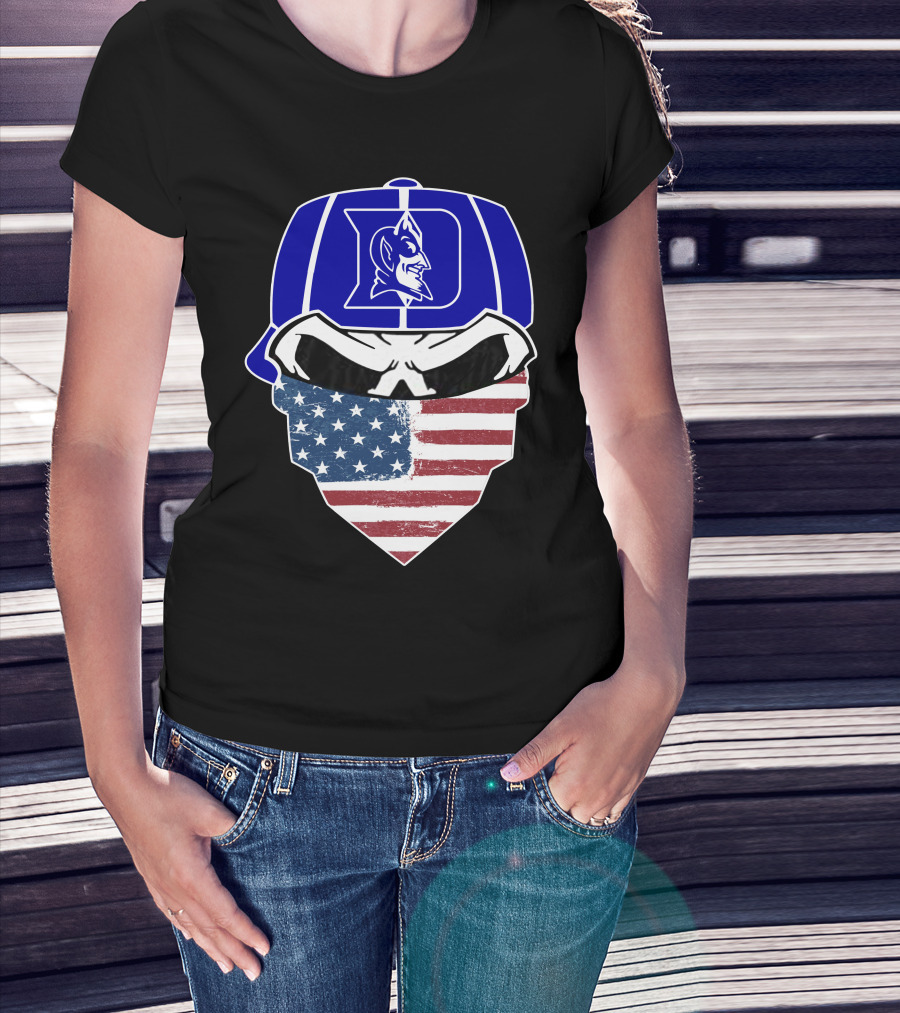 Duke Blue Devils Skulls American Flag Logo Cap Face Mask T-Shirt