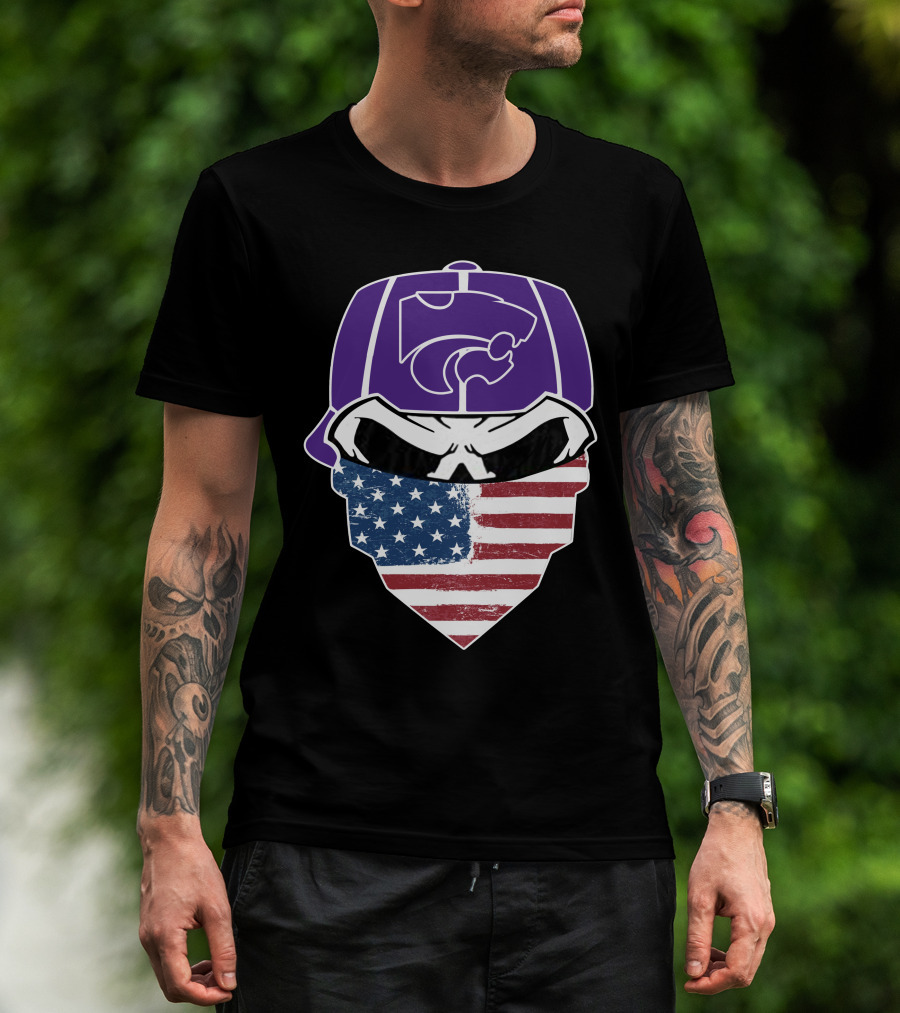 Kansas State Wildcats American Flag Skull Hat T-Shirt