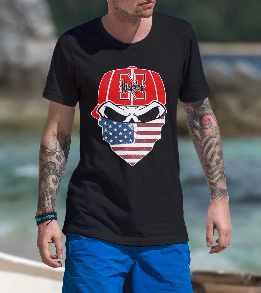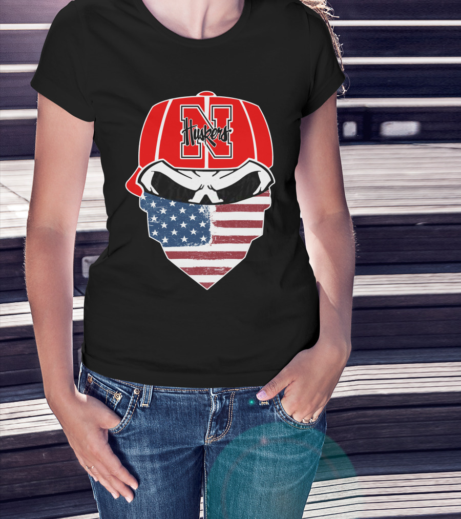 Nebraska Cornhuskers Skuls American Flag Mask N Logo Huskers Hat T-Shirt