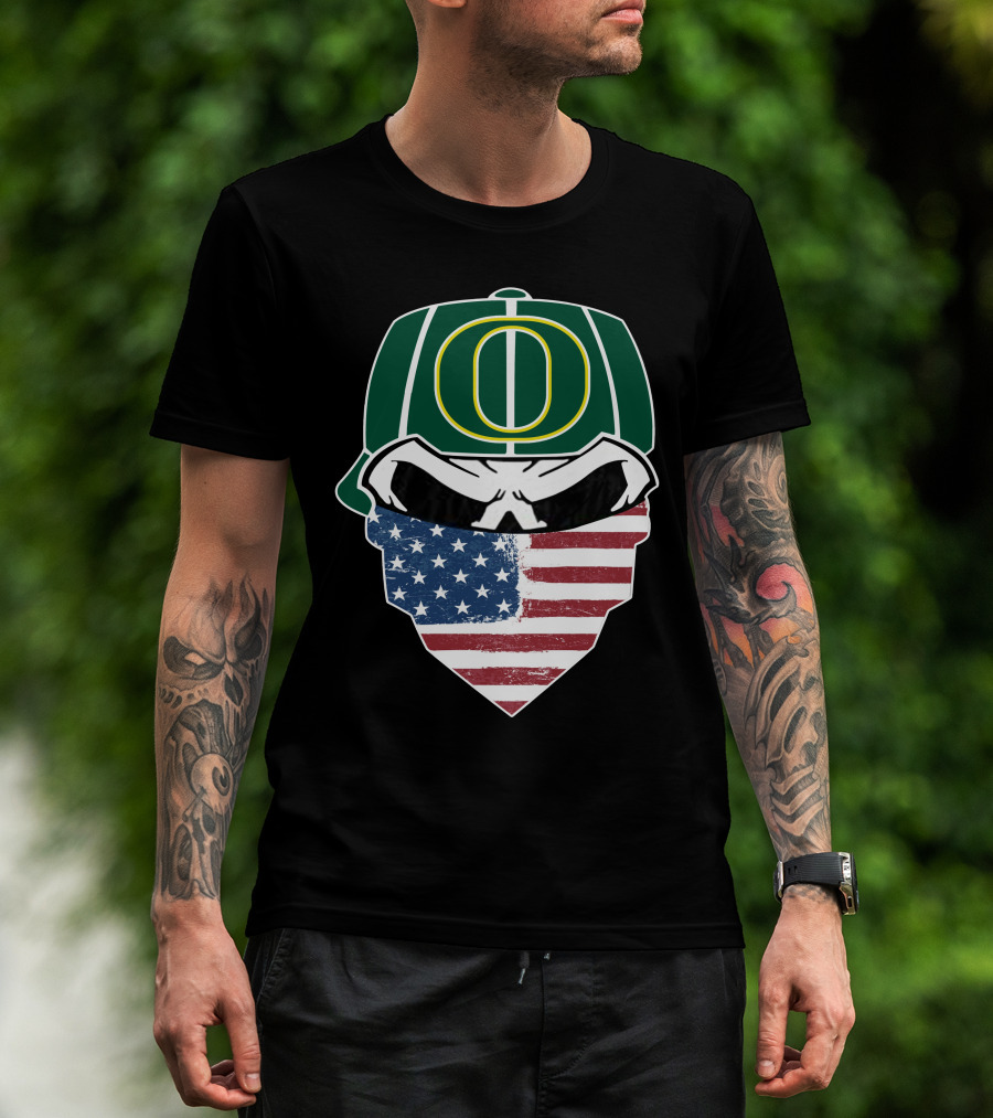 Oregon Ducks Skulls American Flag Mask T-Shirt