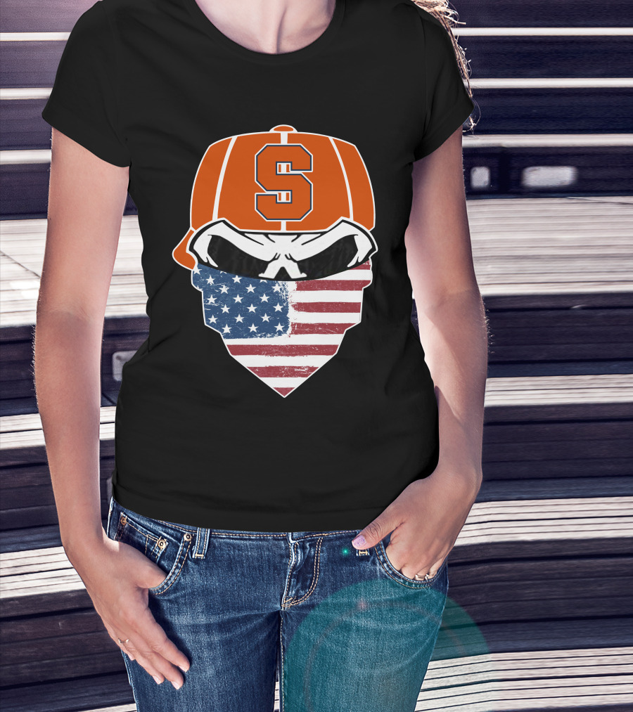 The Syracuse Orange Skull American Flag T-shirt is designed for everyday wear and a consistent fit. Fabric is pre-shrunk ring-spun cotton with durable stitching. See the size chart below for exact measurements.