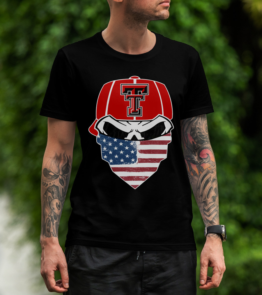 Texas Tech Skuls American Flag Bandana Cap T-Shirt