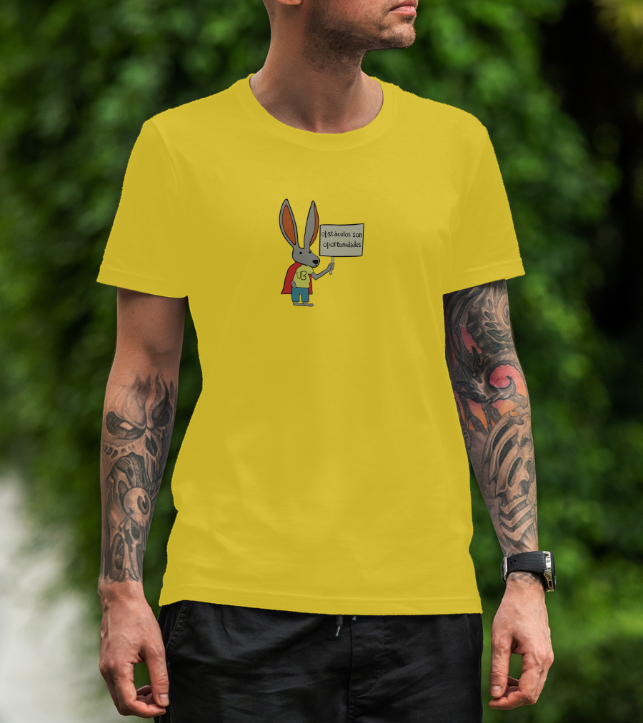 Obstáculos Son Oportunidades Conejo Superman Capa 13 Amarillo T-Shirt