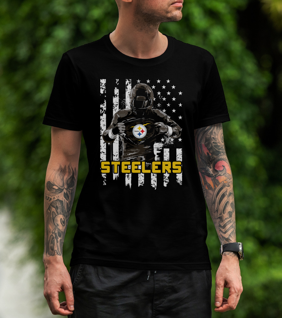 Steelers Player Emblazoned Over Distressed American Flag Iconic T-Shirt